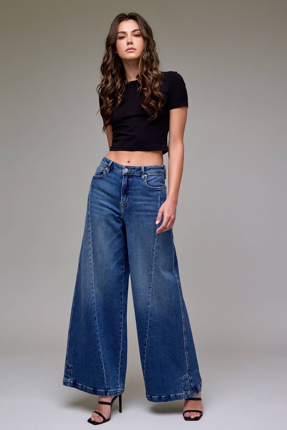 Vintage High Rise Seam Hem Detail Super Wide leg