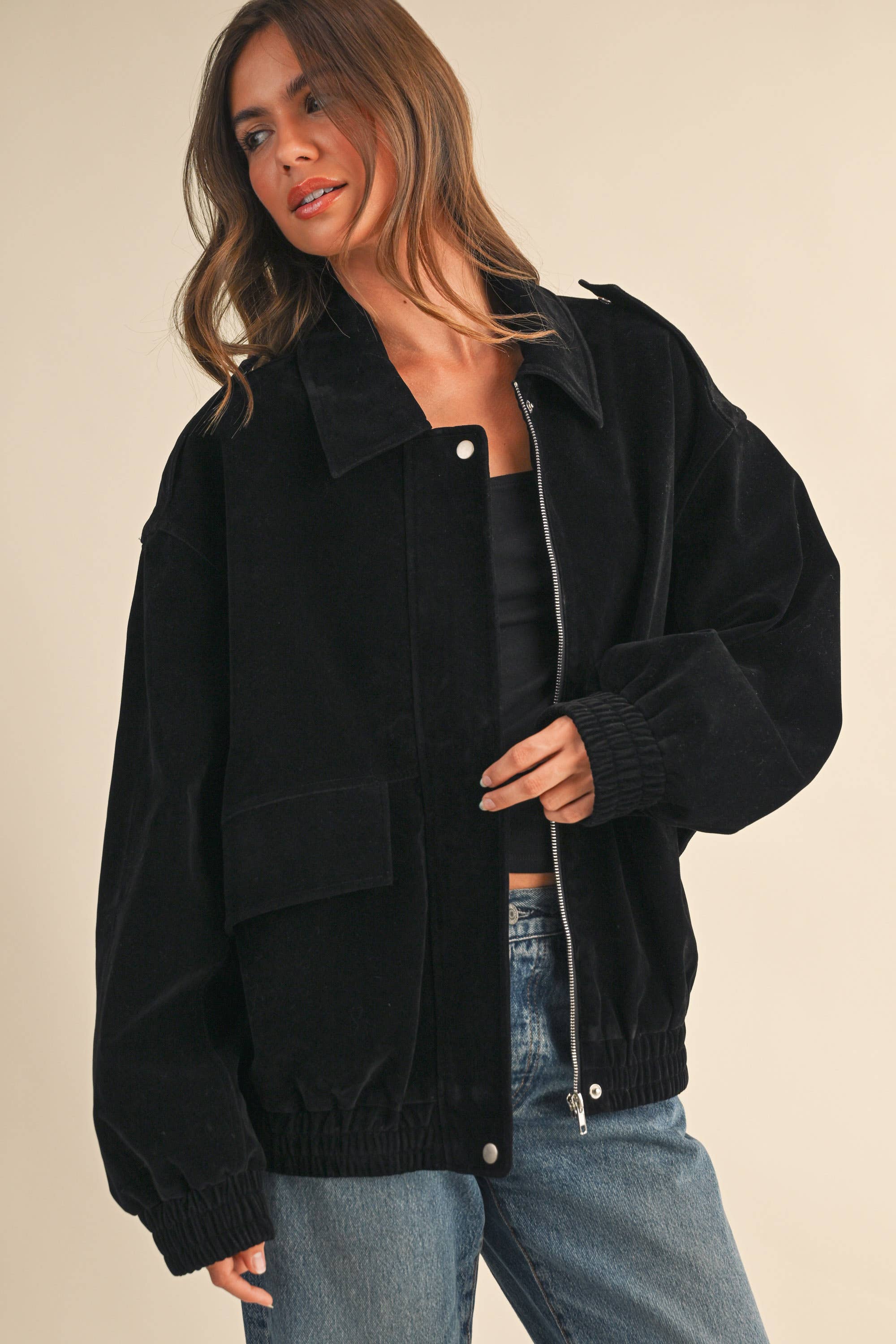 OVERSIZED SUEDE BOMBER JACKET