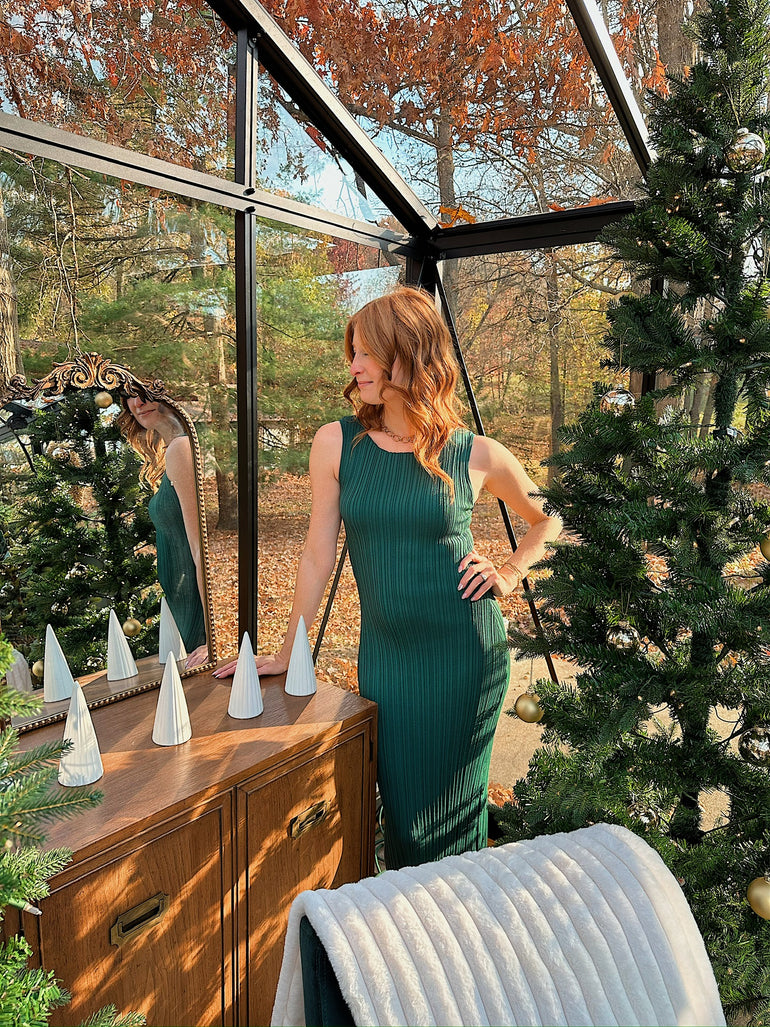 Hunter Green Patterned Rib Knitted Dress