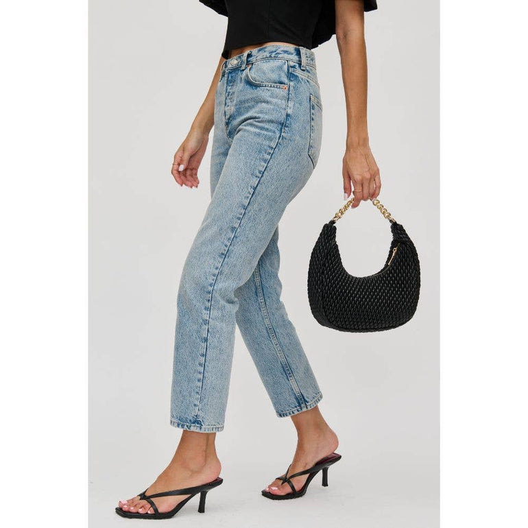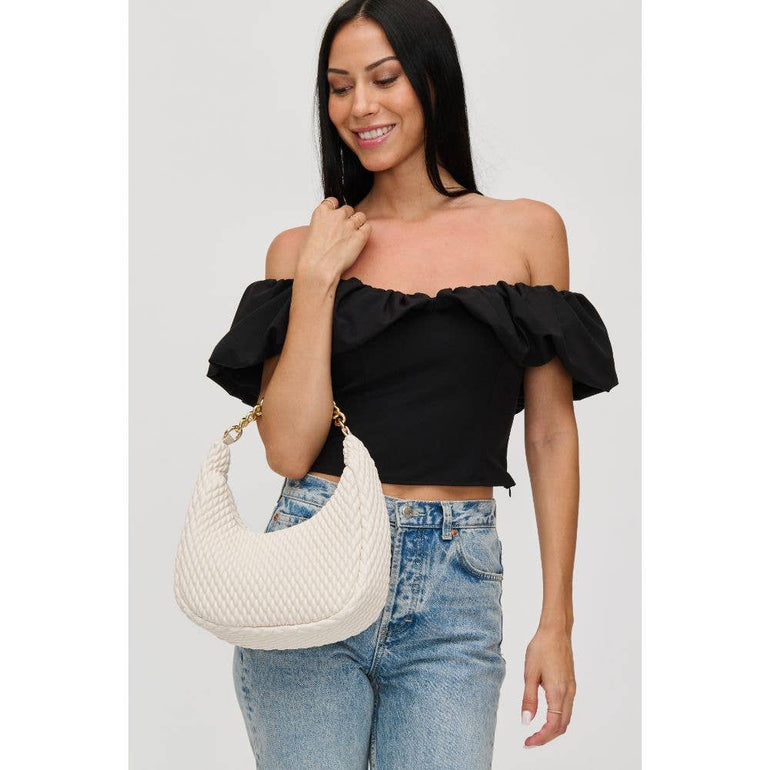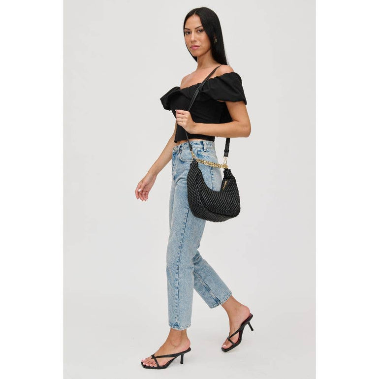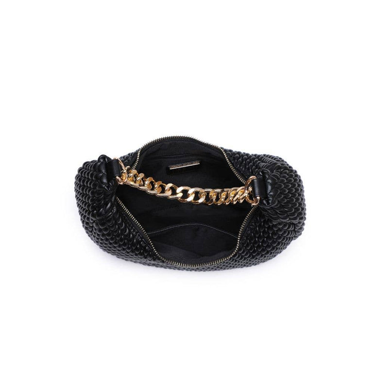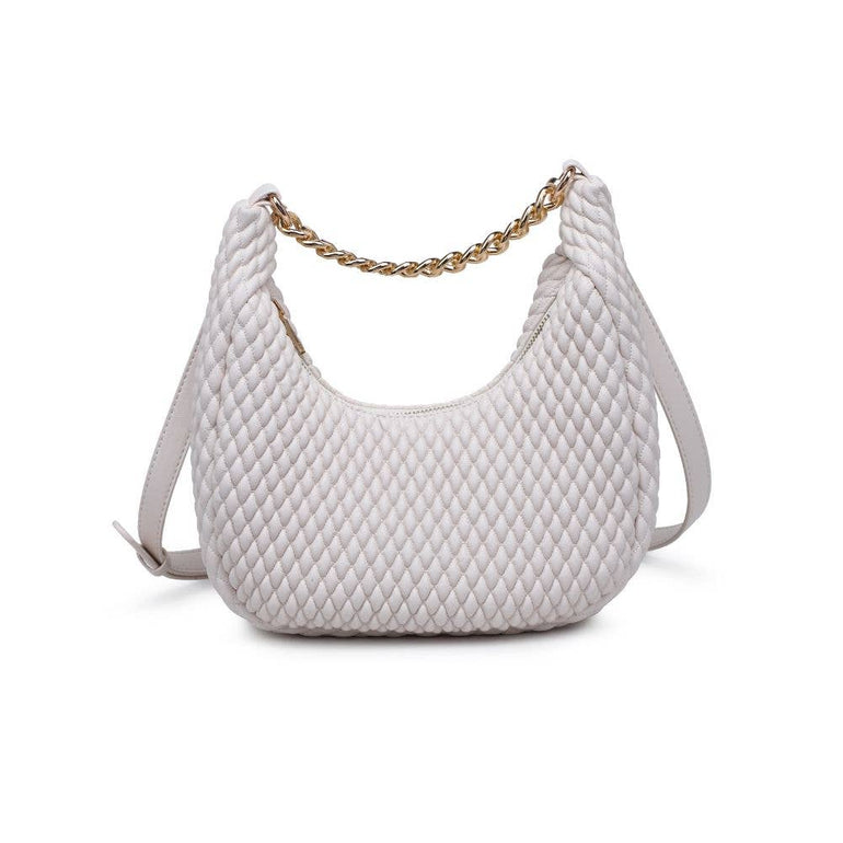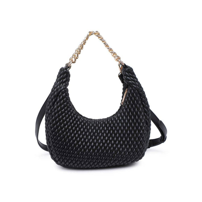 Made with high-quality vegan leather and featuring a diamond-stitched design and chunky chain detail, this bag is the perfect choice for any fashion-forward babe. The zipper closure keeps your belongings safe and secure, while the crossbody strap makes it easy to carry. Perfect for any occasion where you want to add a touch of edge to your outfit. *Item Type: Crossbody *Material: Vegan Leather *Closure: Zipper *Exterior Details: Vegan Leather With Diamond Stitched Design, Chunky Chain Detail