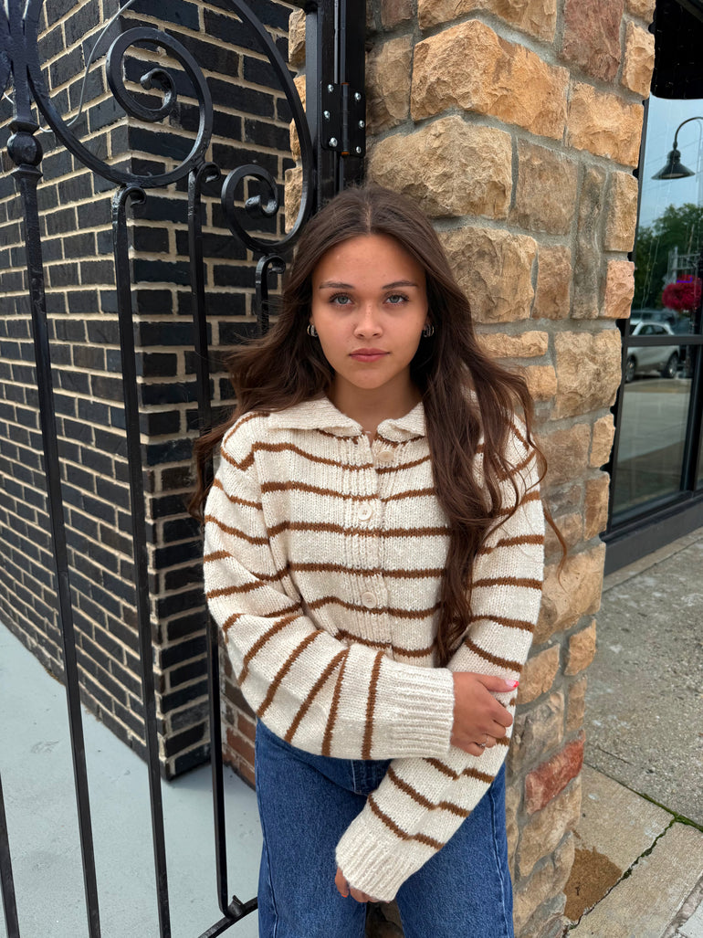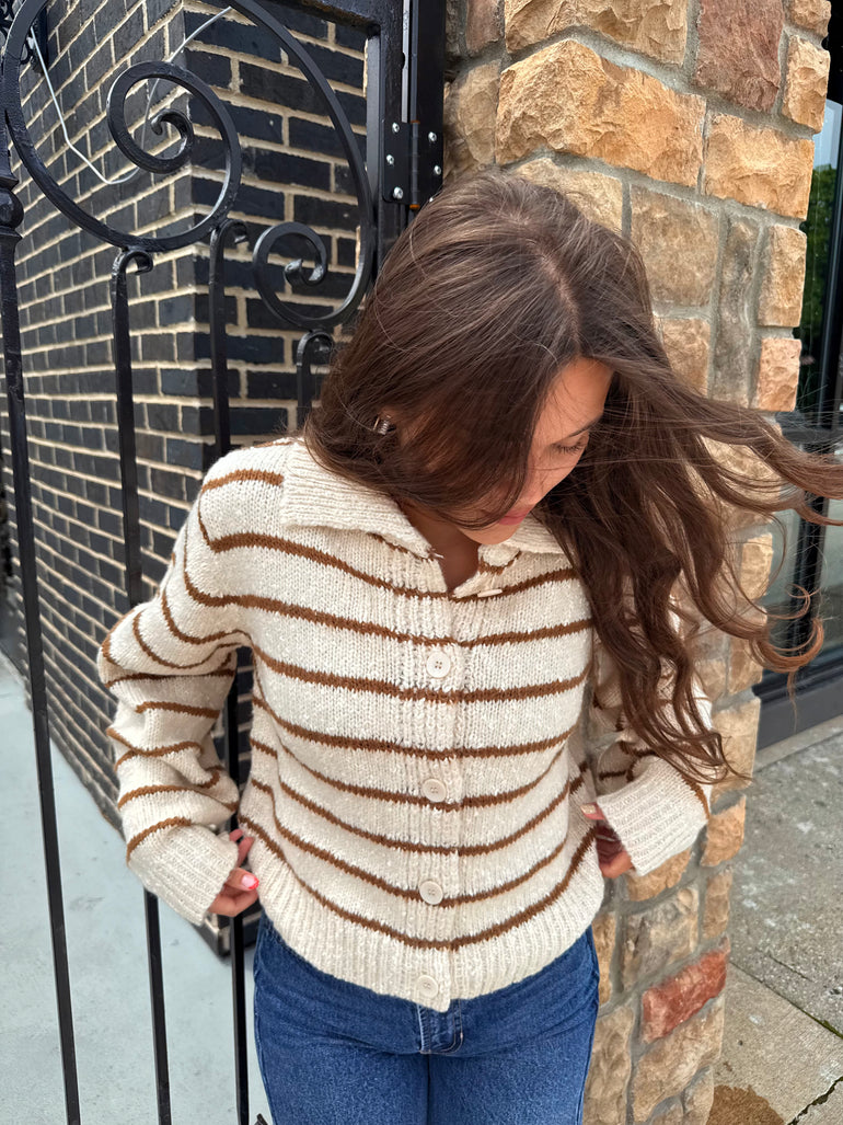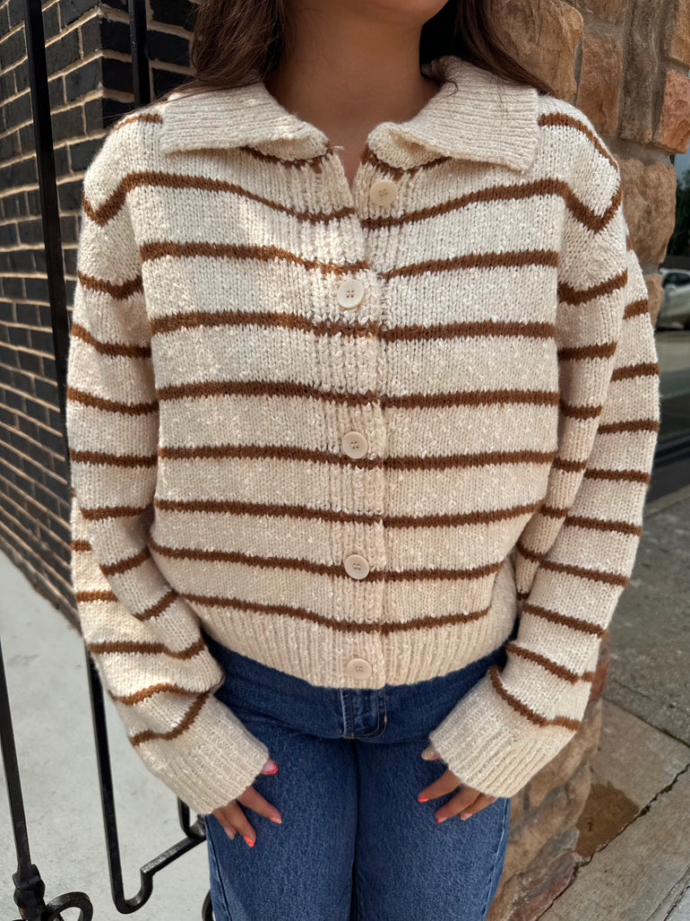 BUTTONDOWN STRIPED KNITTED CARDIGAN