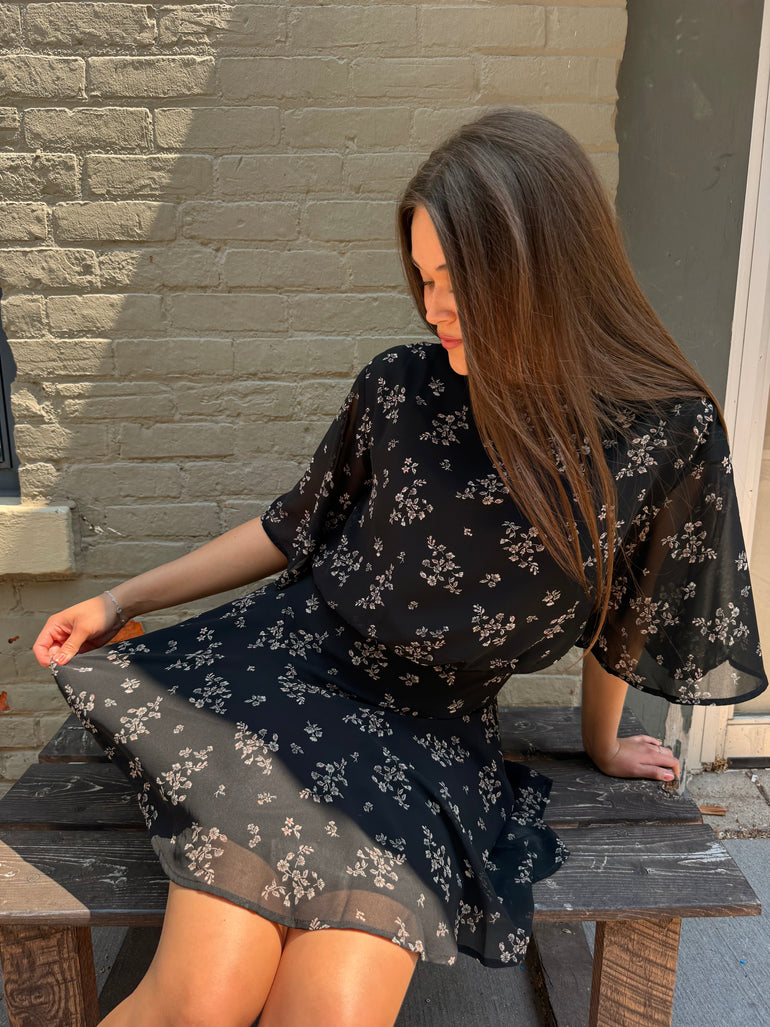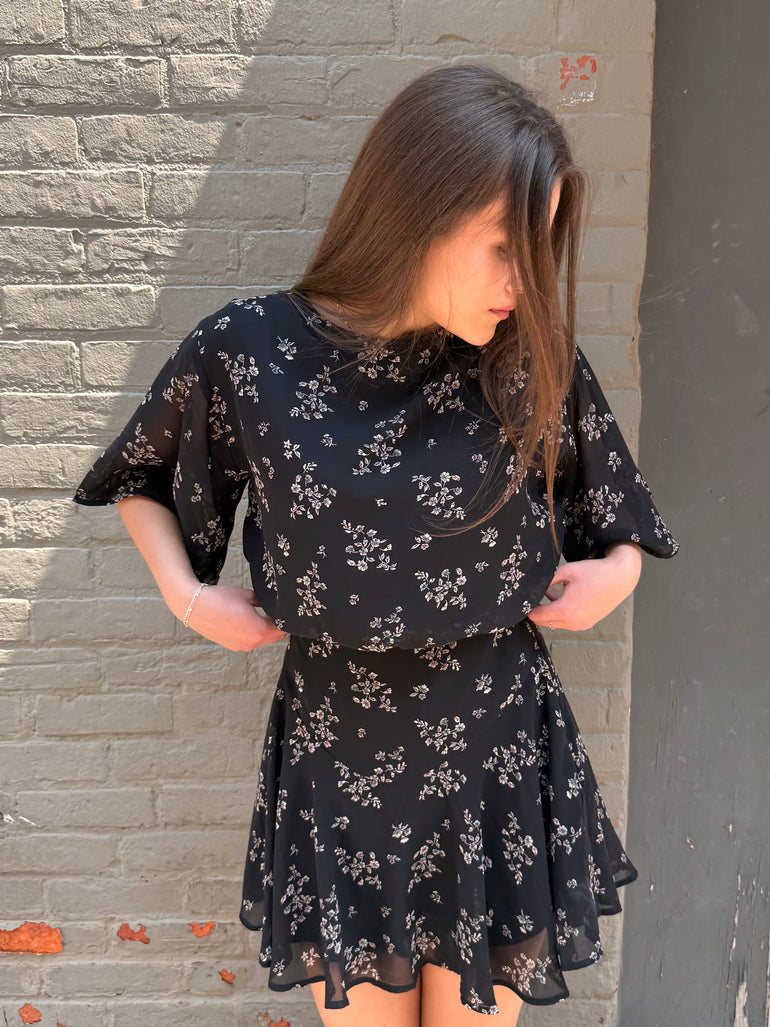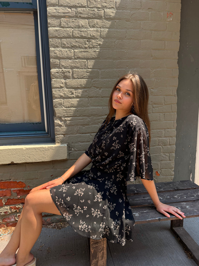 Woven Polyester Chiffon Floral Print Mini Dress
