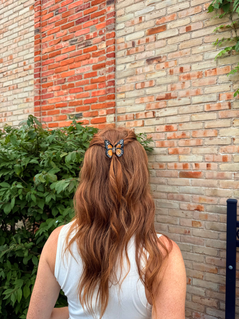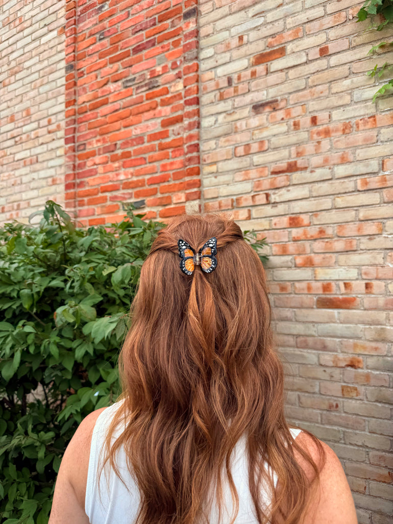 hand-painted Monarch Butterfly is now Mini! Carefully crafted from cellulose acetate - an eco-friendly, biodegradable material made from recycled wood pulp. The claw is double sided, for a perfect look from all angles! Style notes - original Monarch design - hand-painted clip - double-sided design - eco-friendly cellulose acetate - includes premium retail packaging - 100% recyclable & plastic-free packaging - imported
