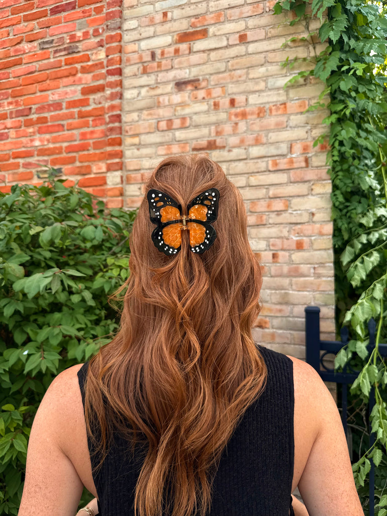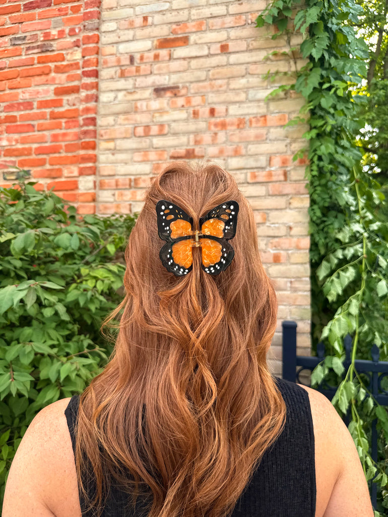 Our monarch butterfly claw is hand painted by our Solar Eclipse artists. Carefully crafted from cellulose acetate - an eco-friendly, biodegradable material made from recycled wood pulp. The claw is double sided, for a perfect look from all angles! Original design you won't find anywhere else! Style notes - original design - hand-painted clip - double-sided design - large claw clip for thick hair - eco-friendly cellulose acetate - includes premium retail packaging - 100% recyclable & plastic-free packaging - imported