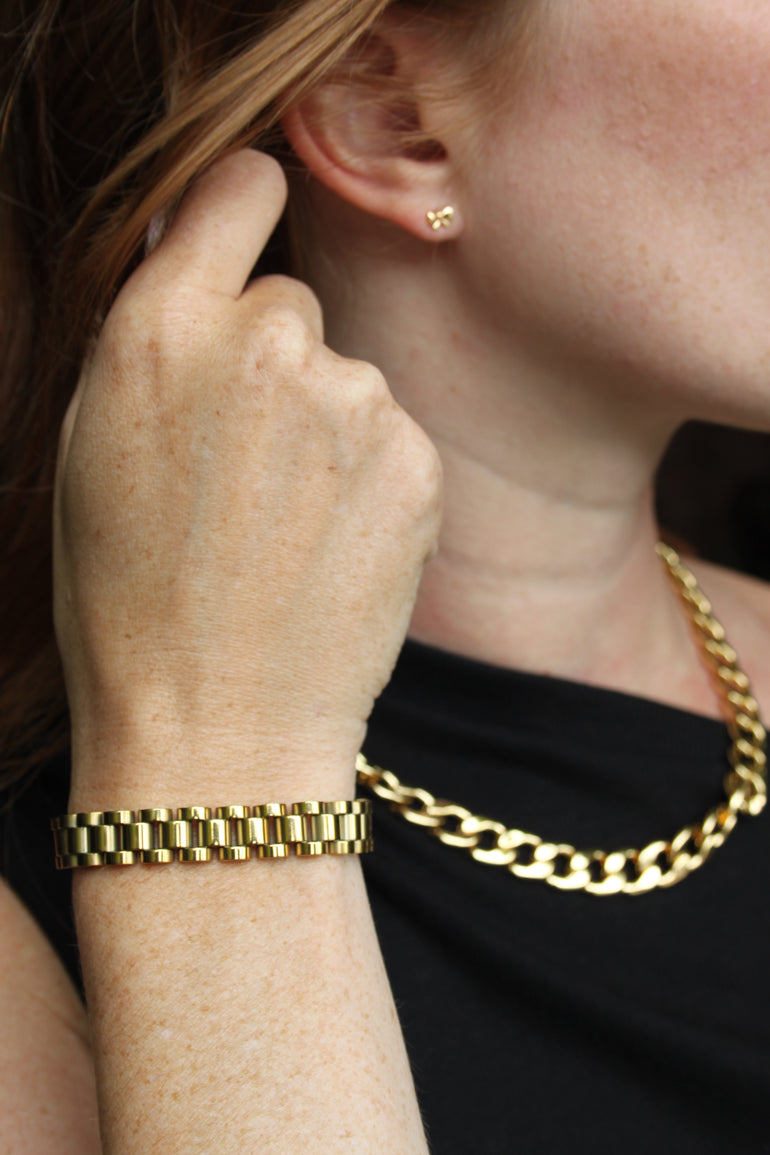 PRODUCT DETAILS Waterproof💧💧💧 Stainless Steel 18K Gold Hypoallergenic Nickel Free Size: 7.5" with 3 (10 mm removable extenders) Closure: Clip Clasp
