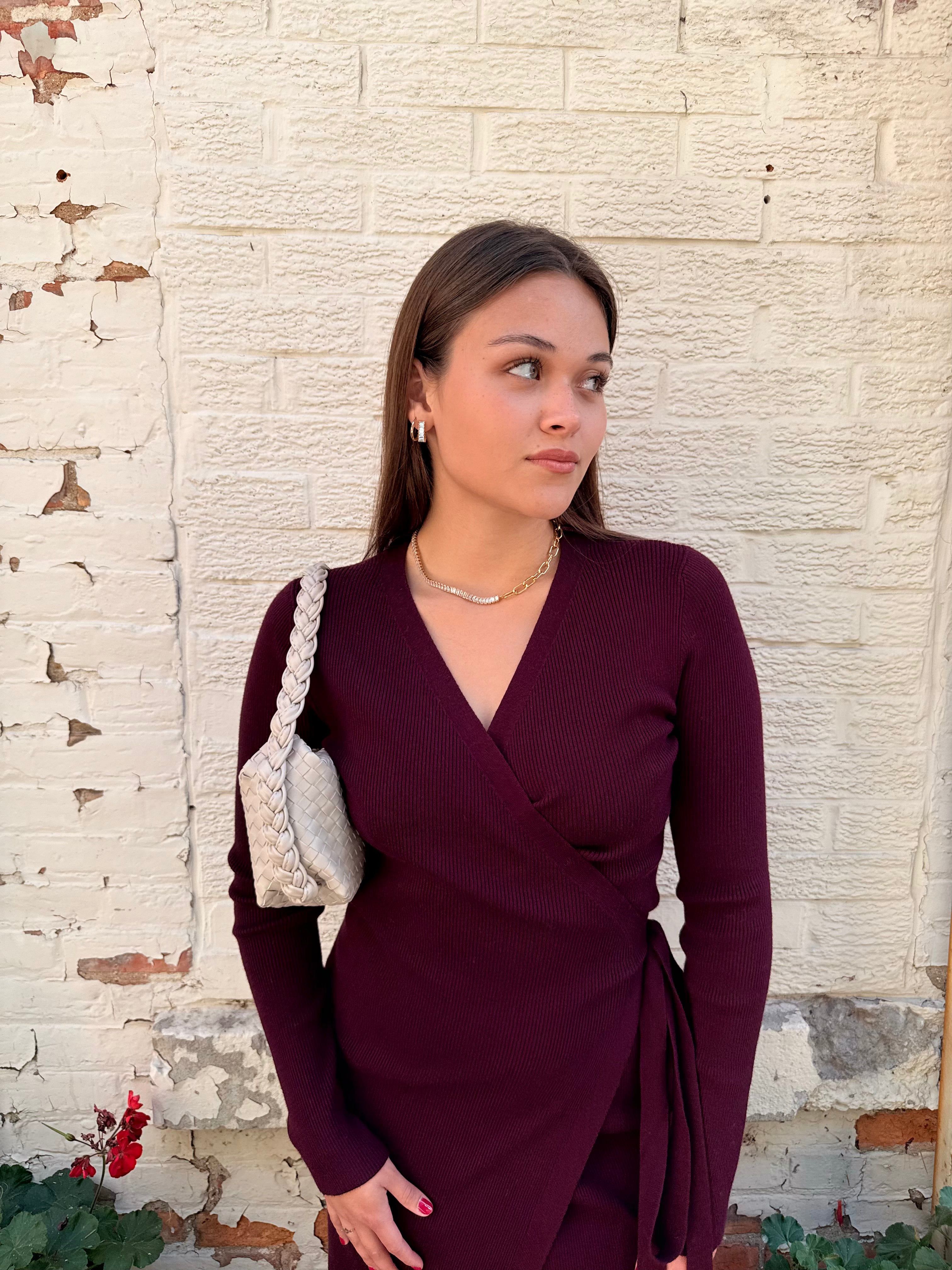 Ribbed Knit V-neck wrap midi dress