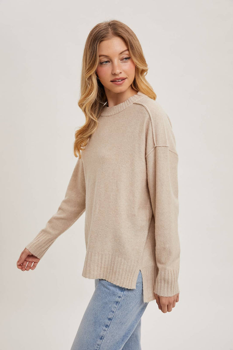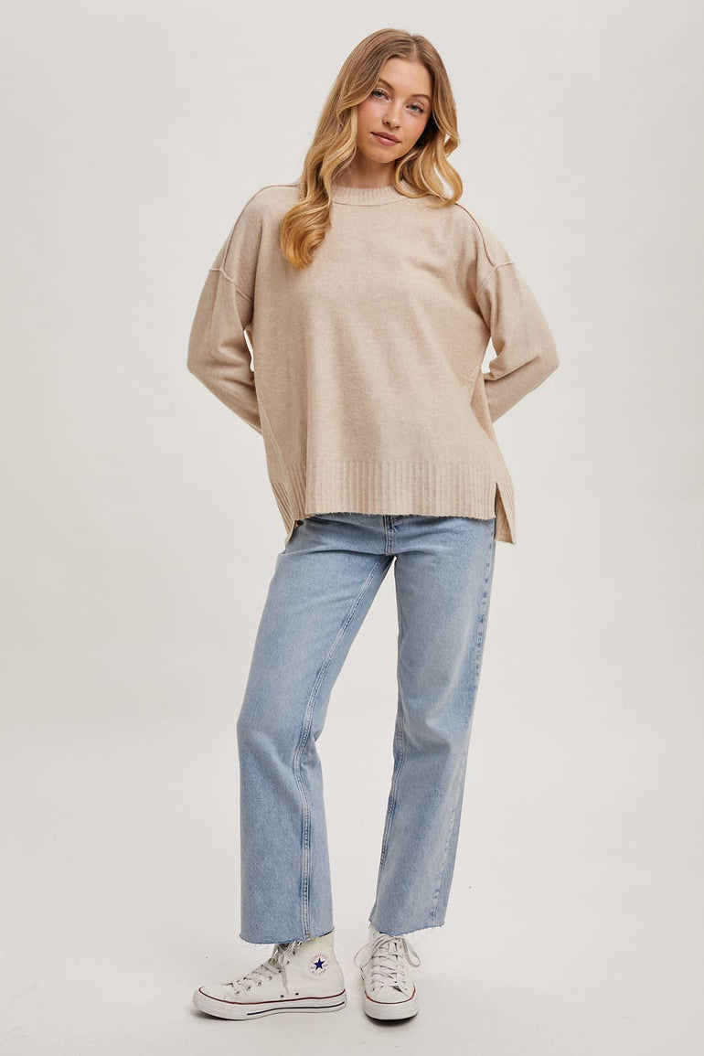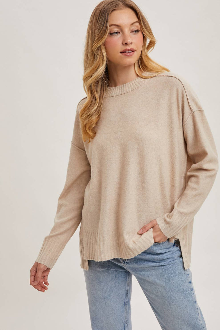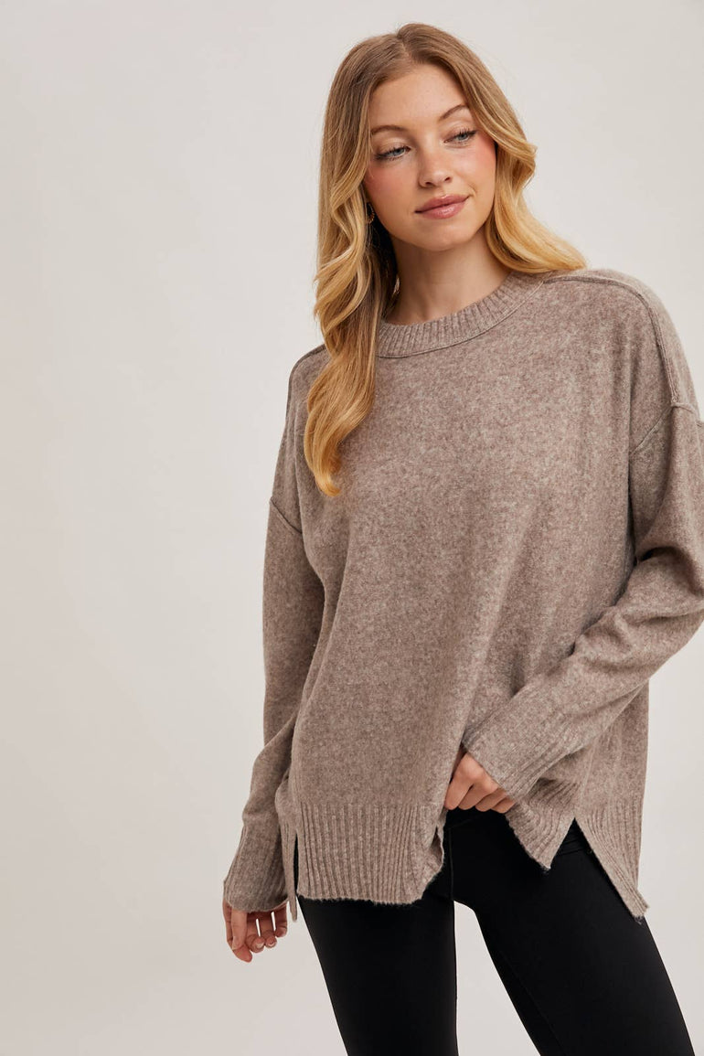 The crew neck knit sweater pullover is a timeless essential for any wardrobe. With its classic crew neckline and cozy knit fabric, this pullover provides warmth and style for cooler days. Its versatile design allows it to be dressed up with tailored trousers or kept casual with jeans. Perfect for layering, the sweater's comfortable fit and soft texture make it ideal for both work and weekend wear. -Model is 5'9" and wearing a S/M