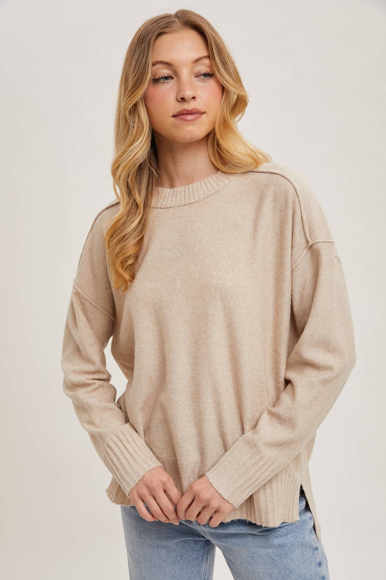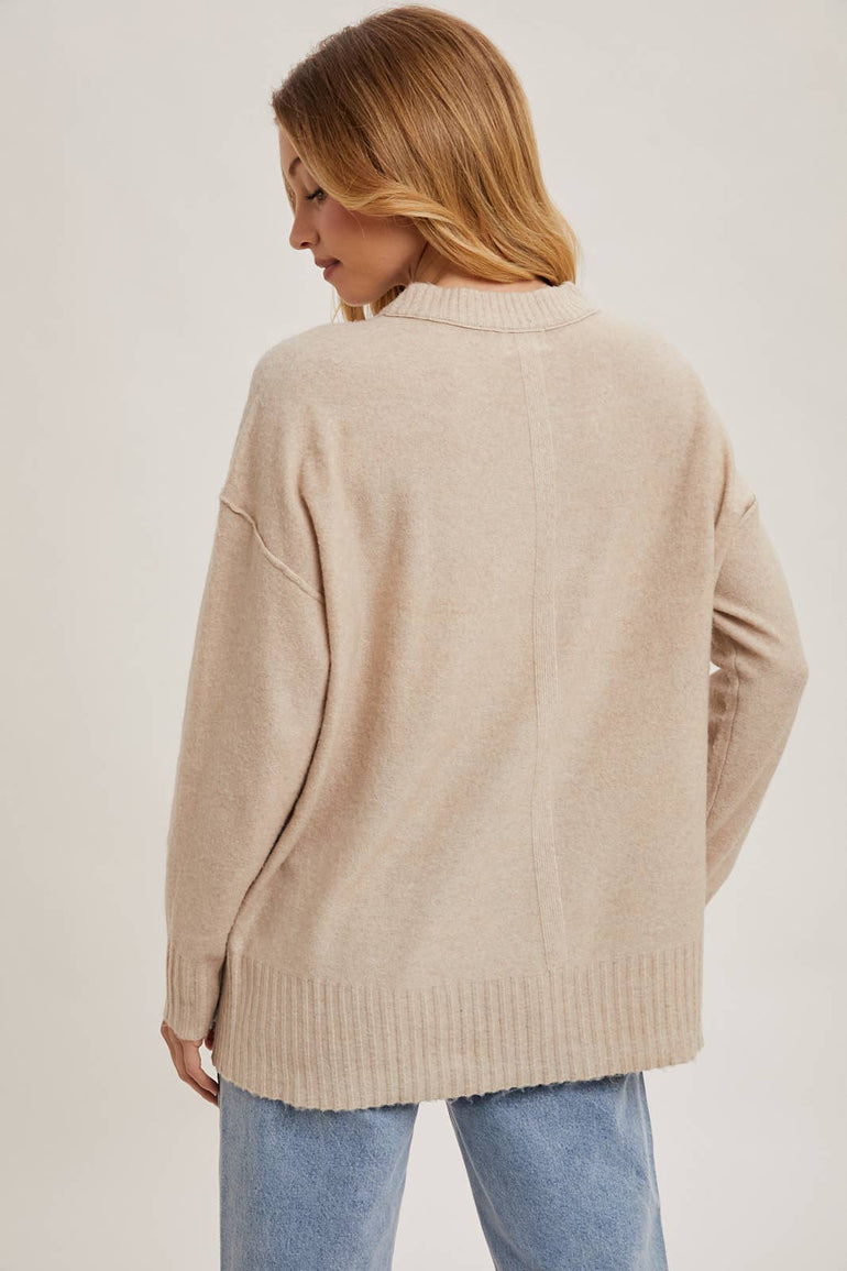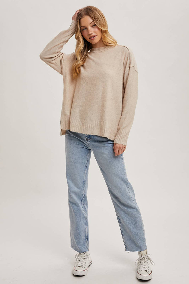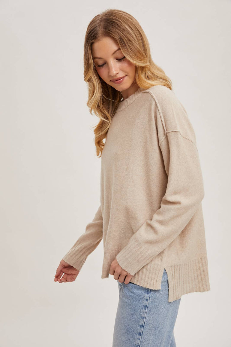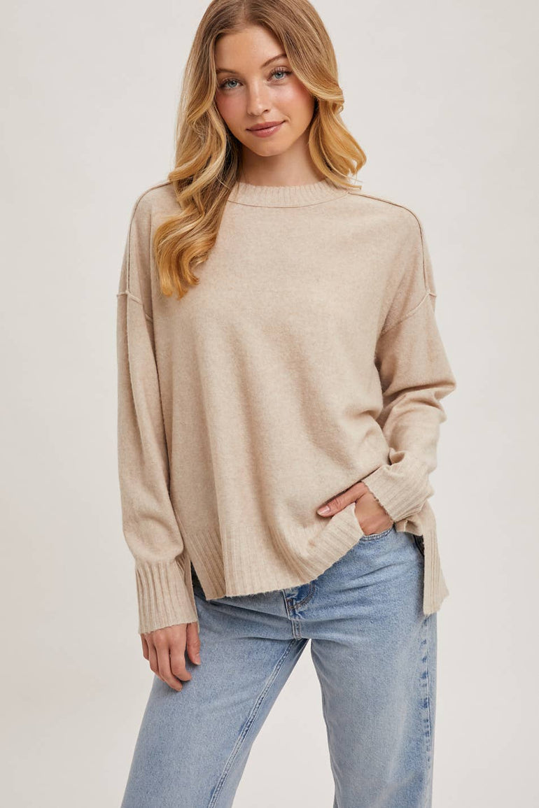 The crew neck knit sweater pullover is a timeless essential for any wardrobe. With its classic crew neckline and cozy knit fabric, this pullover provides warmth and style for cooler days. Its versatile design allows it to be dressed up with tailored trousers or kept casual with jeans. Perfect for layering, the sweater's comfortable fit and soft texture make it ideal for both work and weekend wear. -Model is 5'9" and wearing a S/M