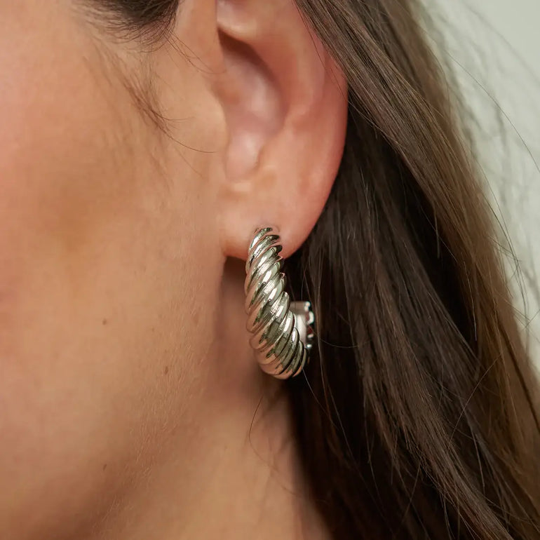 Elevate your ear game with our Braided Hoops Silver earrings, a stunning pair that combines elegance with intricate craftsmanship. These silver hoops feature a captivating braided design meticulously crafted to create a timeless accessory that adds a touch of sophistication to your jewelry collection.