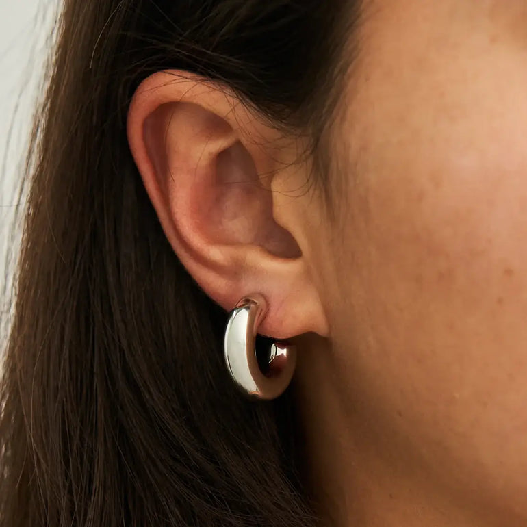 Introducing our Chunky Hoops Small Silver earrings, a versatile and chic addition to your jewelry collection. These finely crafted silver hoops boast a bold, yet refined design, offering a timeless accessory that effortlessly elevates your style with a touch of contemporary flair.