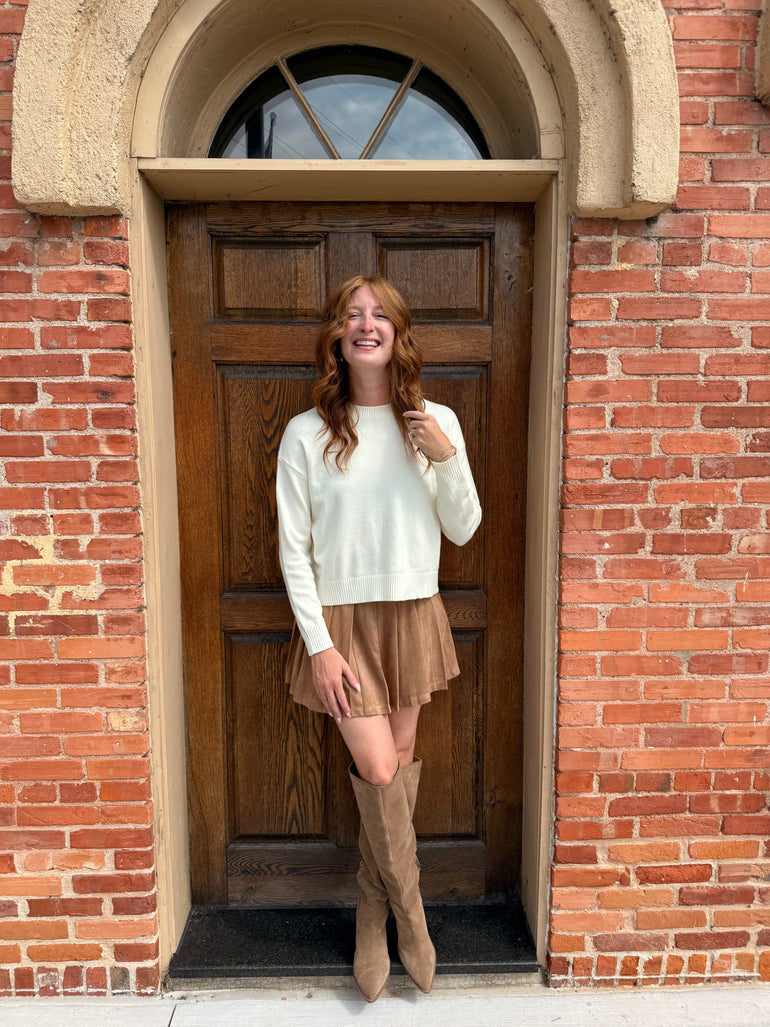 This sweater is a non-striped sweater. Don’t let the details fool you, but it is the softest sweater you’ll ever wear.