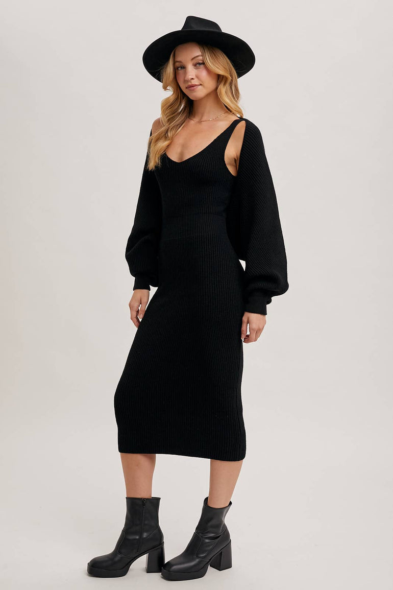 V-NECK KNIT MIDI DRESS AND KNIT SHRUG SET
