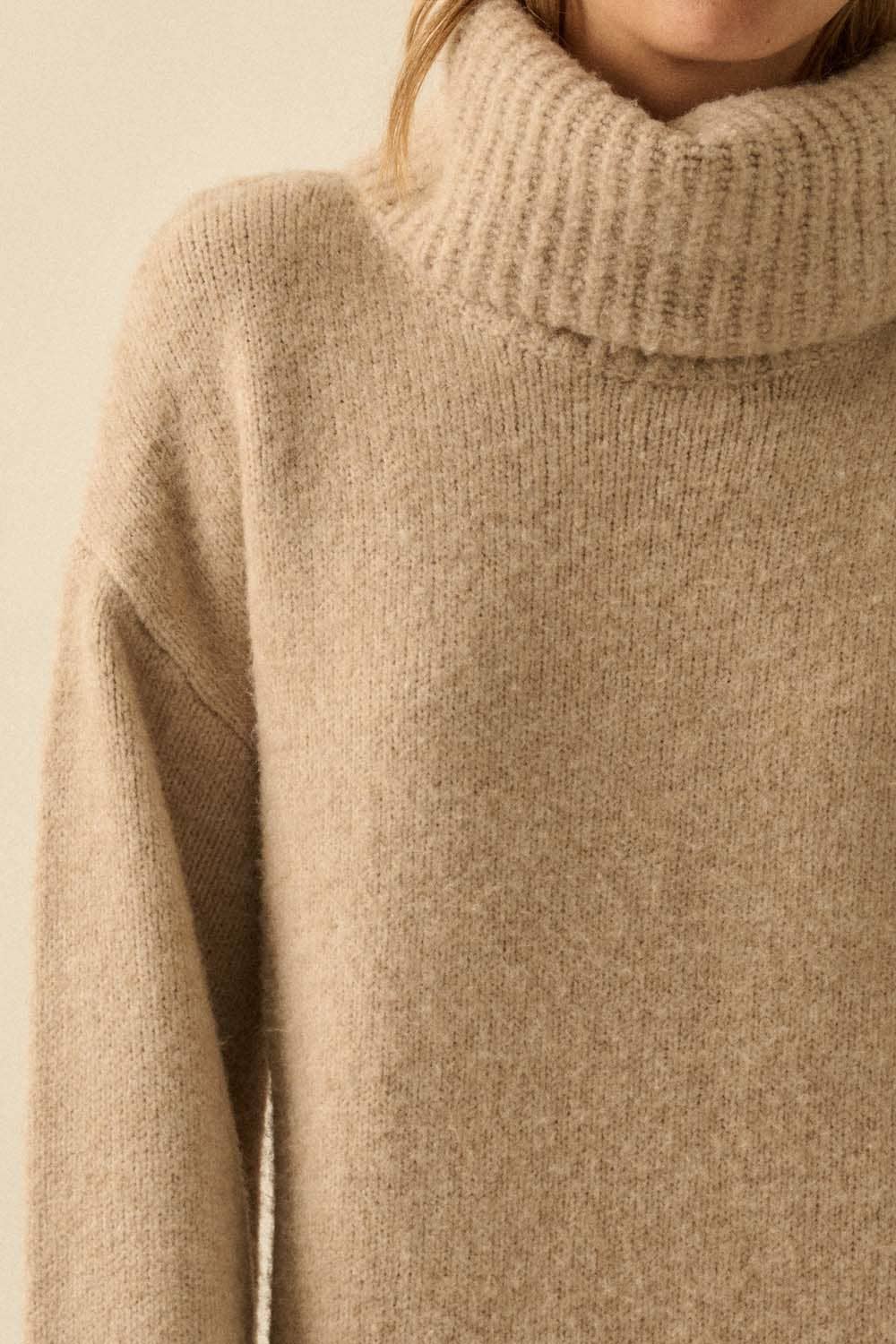 Solid Felted Knit Cowl-Neck Midi Sweater Dress