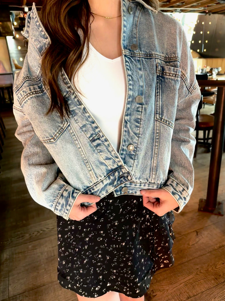 Woven Denim 100% Cotton Washed Button Down Jacket