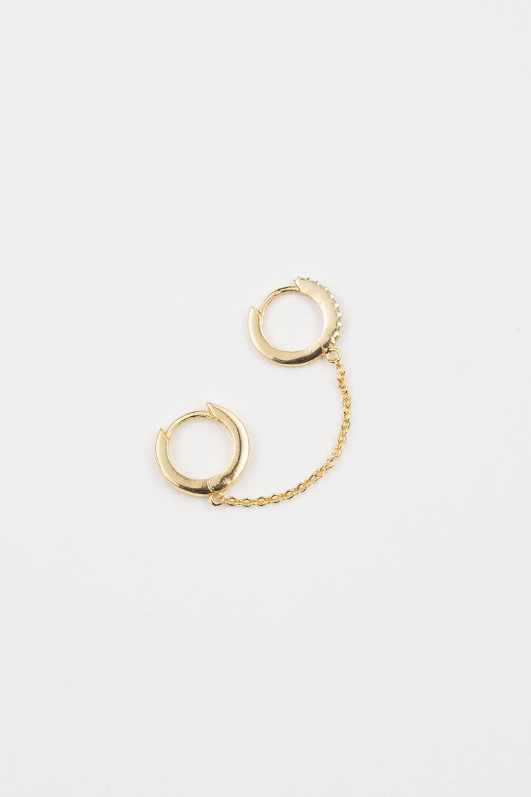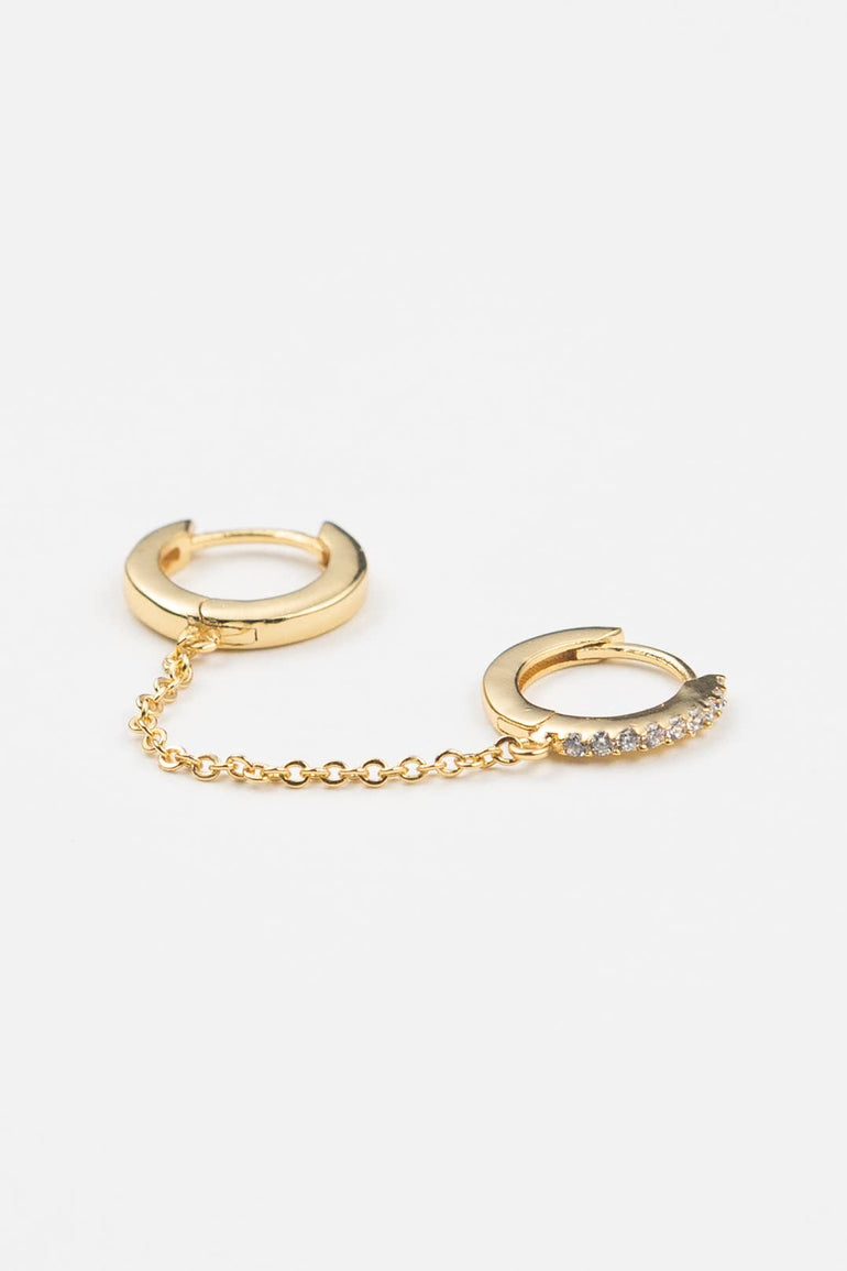 *SINGLE Earring: 2 Huggies connected with a chain*
