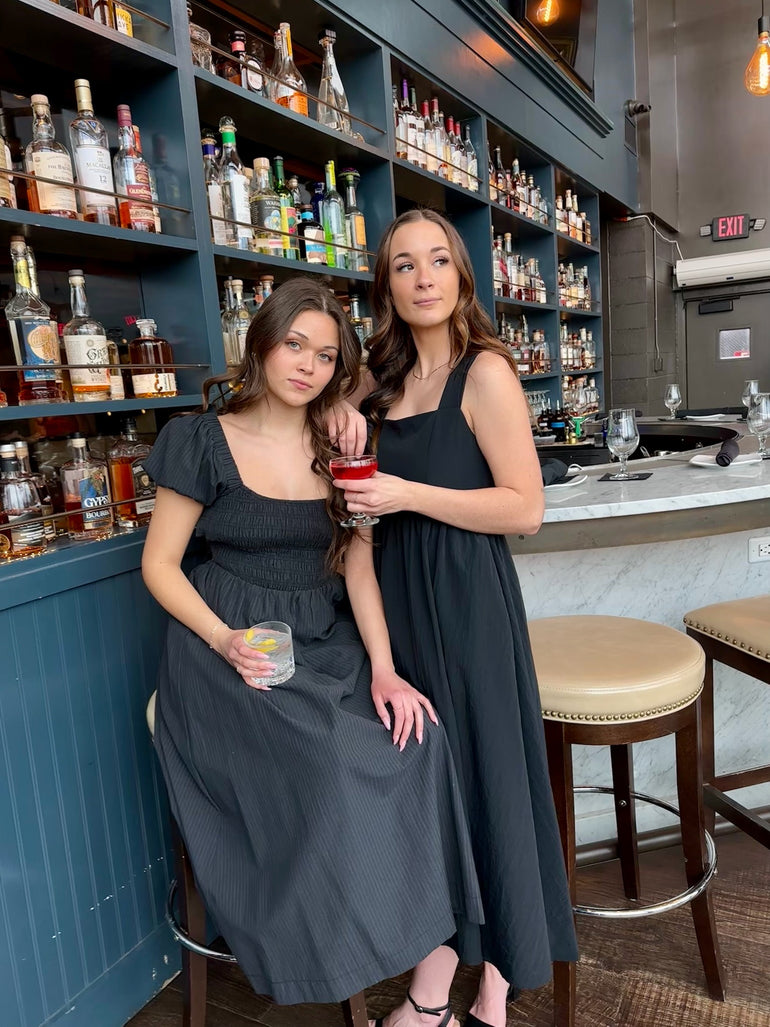 Thick Strap Black Dress With Crossed Back Detail. With Pockets.
