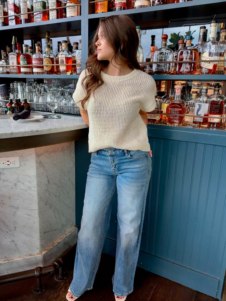 Waffle knit short sleeve top.