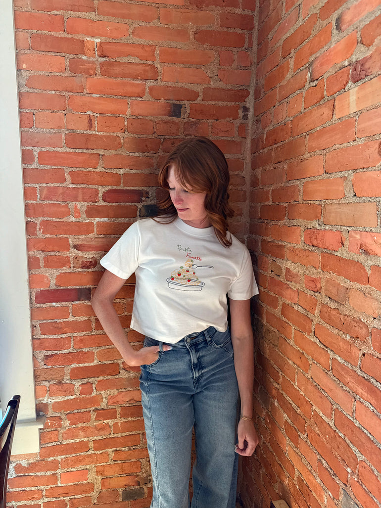 Pasta Fanatic Vintage-Wash Cropped Graphic Tee