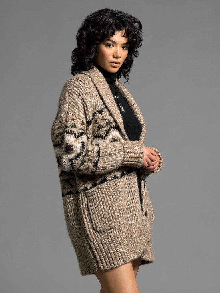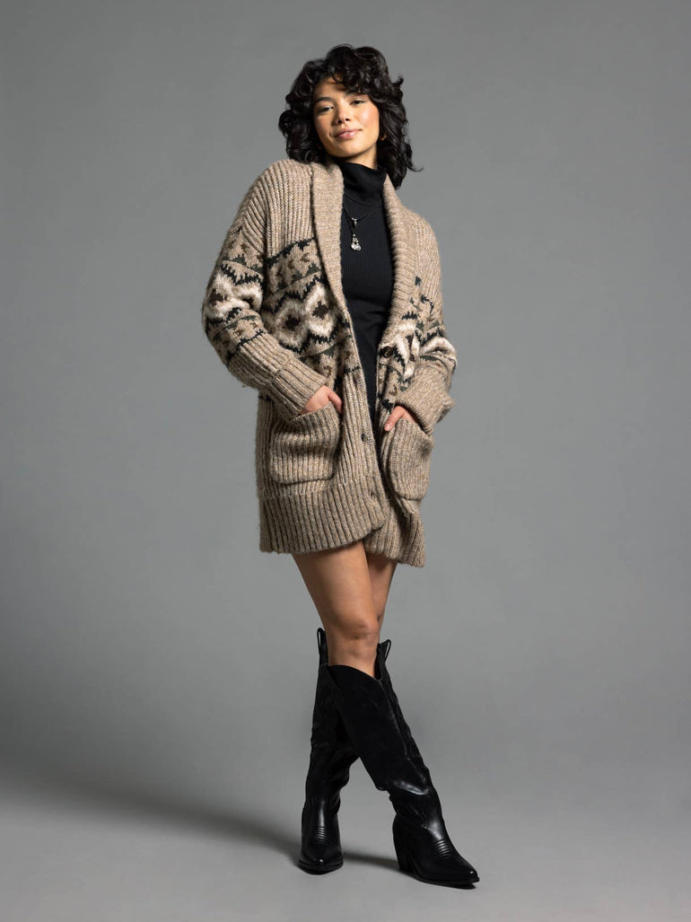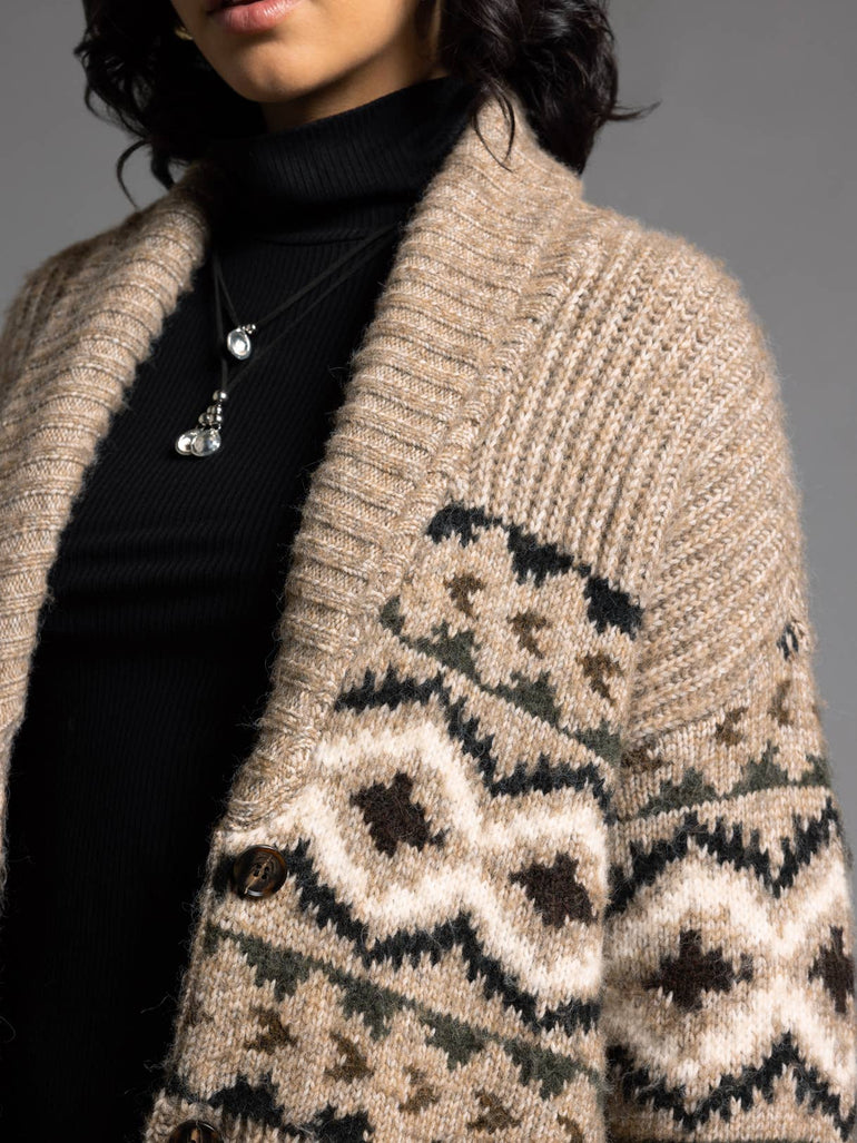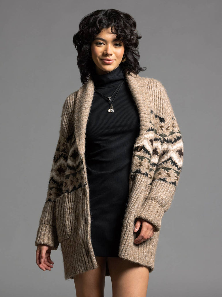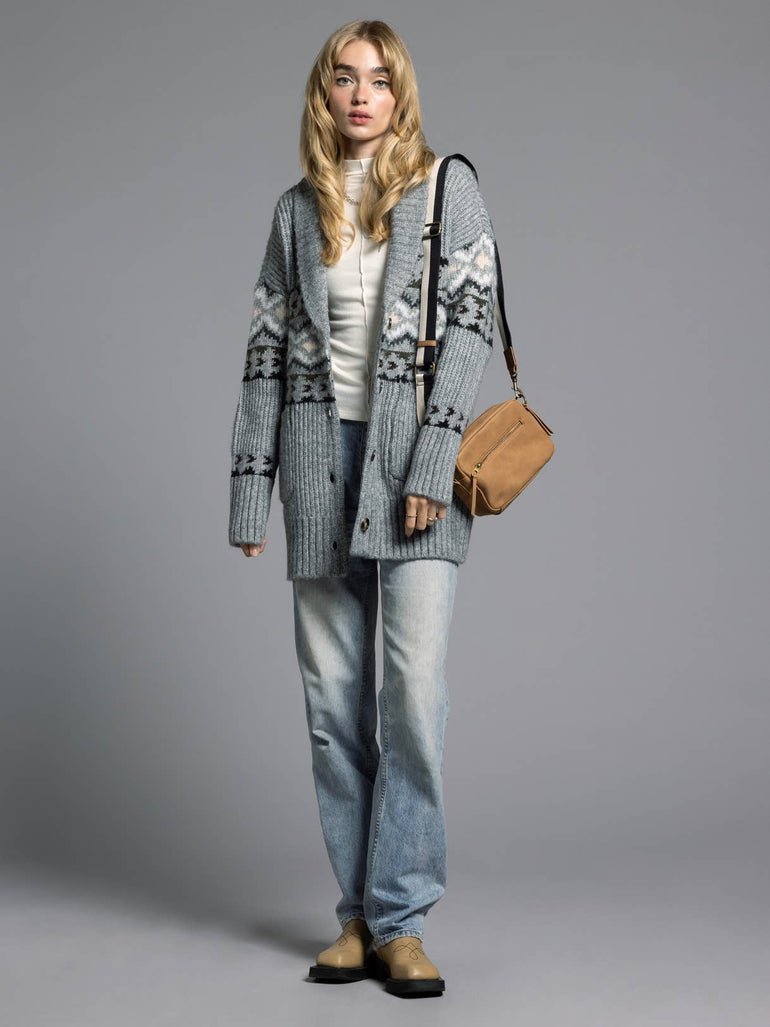 Details: *Cardigan *Shawl lapel *Side pockets Measurements for a size small: *Length: 29.5" *Chest: 20.5" *Sleeve length: 19.5" Content: *36% Polyester *33% Recycled fiber *20% Acrylic *11% Nylon