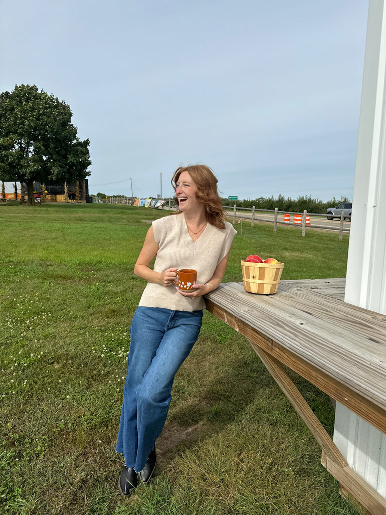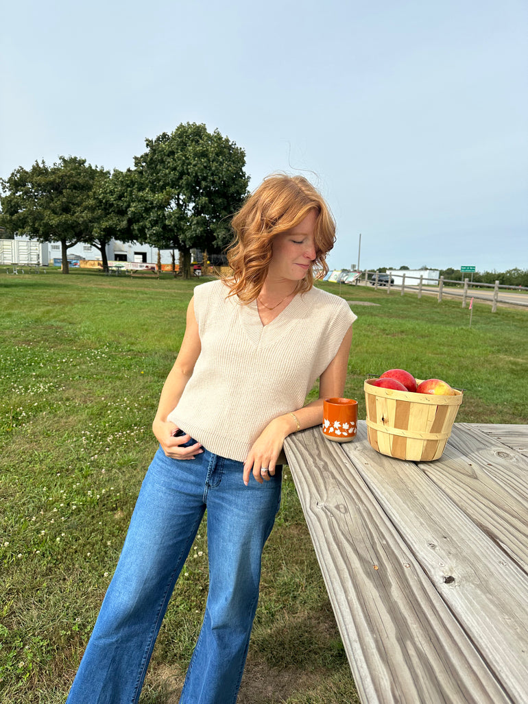 Beige V-Neck Sweater Vest