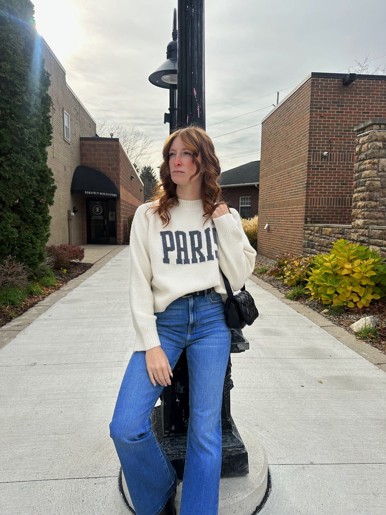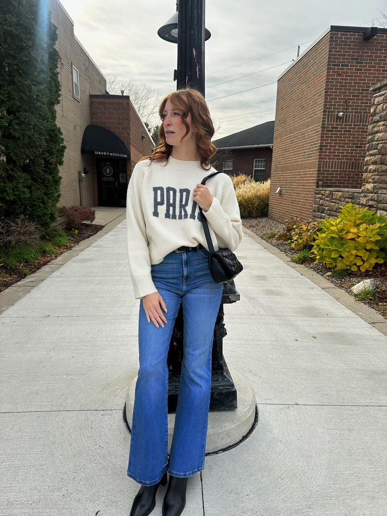 Cream Paris Letter Front Sweater
