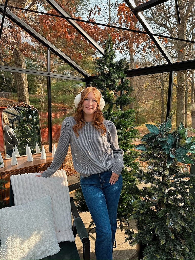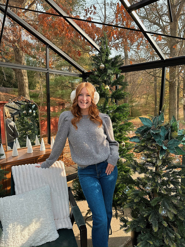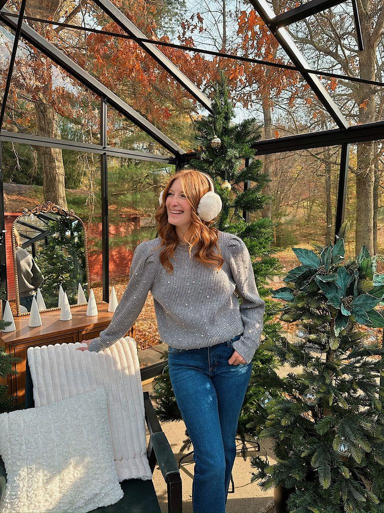 Pearl Embellished puff sleeve sweater