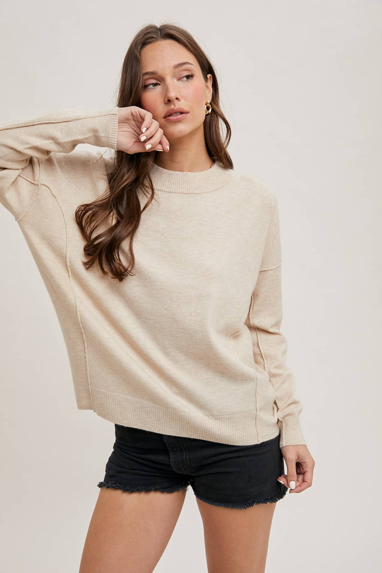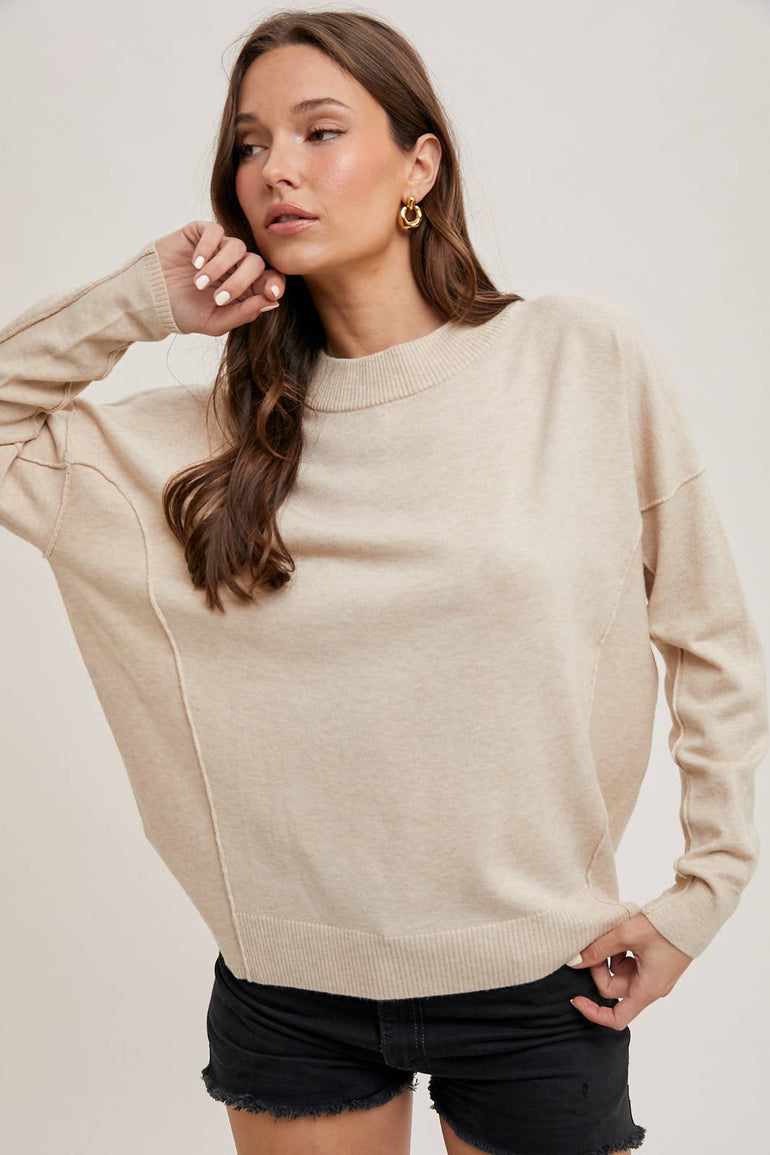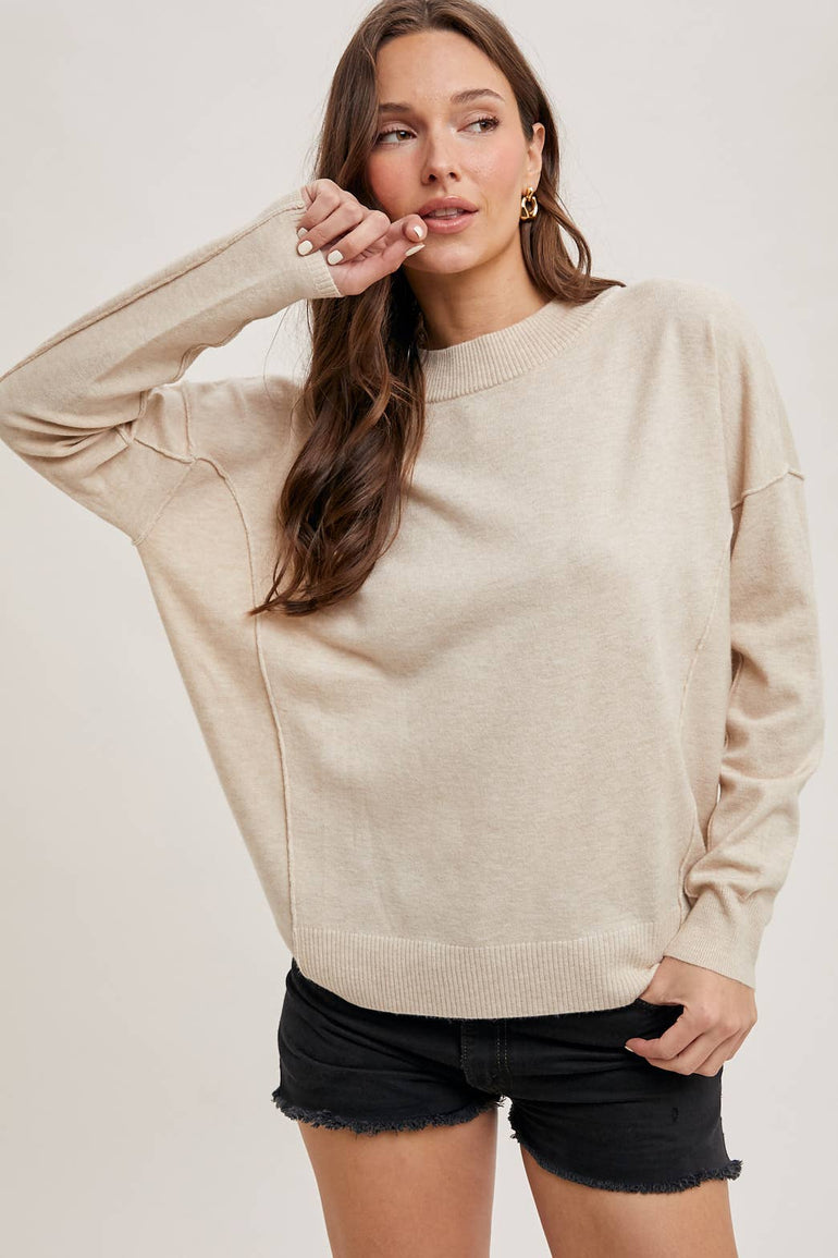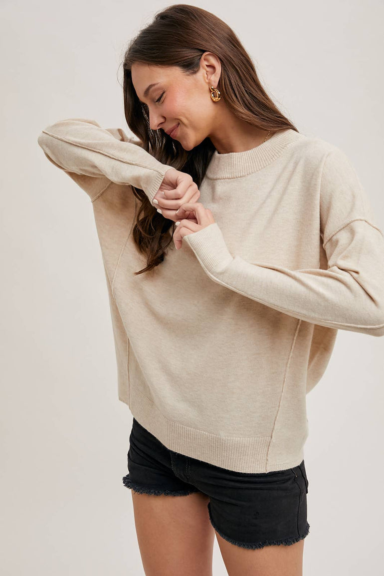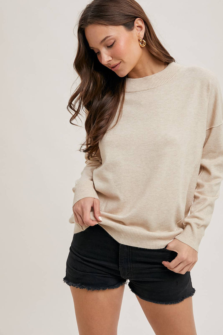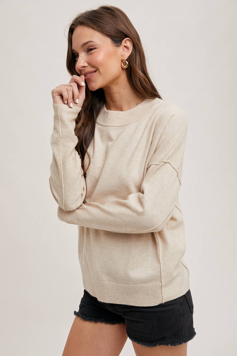 SOFT KNIT CREWNECK SWEATER PULLOVER IN OATMEAL