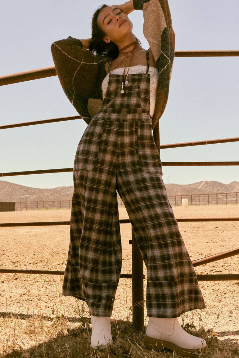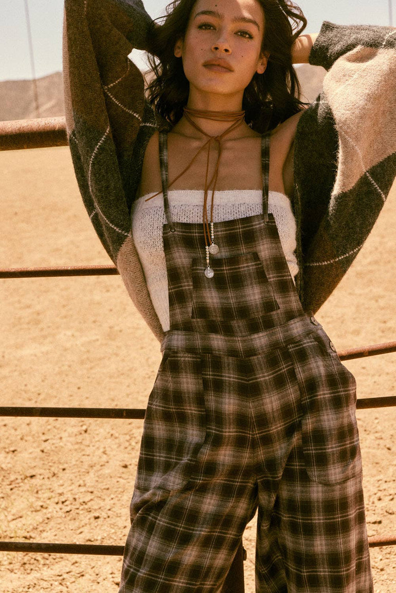 An argyle plaid knit shrug cardigan with the following features: Open front. Long dolman sleeves. Ribbed cuffs. Loose fit. Includes cardigan only. Tube top not included.