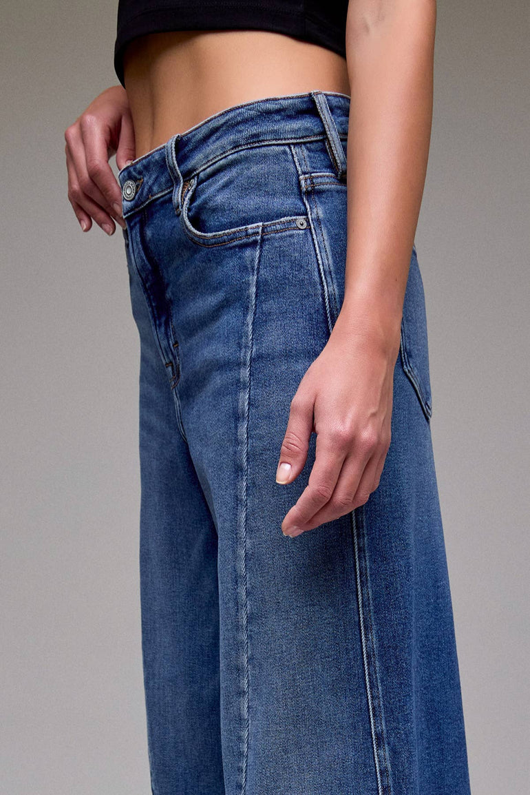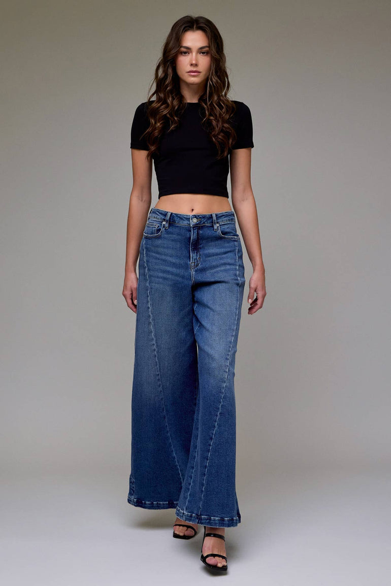 Vintage High Rise Seam Hem Detail Super Wide leg